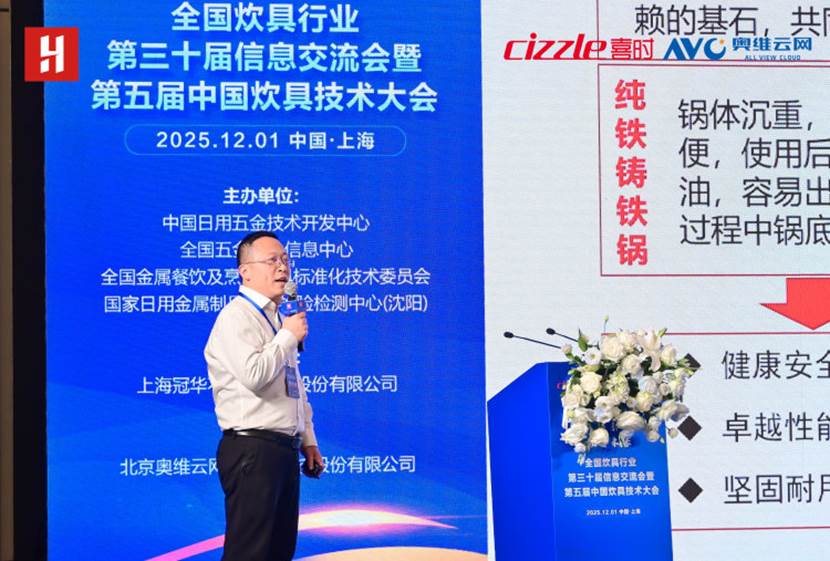2025年12月1日,全国炊具行业第三十届消息暨第五届中国炊具手艺大会正在上海崇明由由喜来登酒店成功举办。本次会议由中国日用五金手艺开辟核心、全国五金工业消息核心、全国金属餐饮及烹调器具尺度化手艺委员会、国度日用金属成品质量查验检测核心(沈阳)从办,奥维云网大数据科技股份无限公司协办,上海冠华不锈钢成品股份无限公司承办,以“绿色智制·双碳引领·数智将来”为从题,汇聚行业带领、企业代表及专家学者,共探炊具财产转型升级新径。