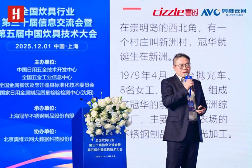 2025年12月1日,全国炊具行业第三十届消息暨第五届中国炊具手艺大会正在上海崇明由由喜来登酒店成功举办。本次会议由中国日用五金手艺开辟核心、全国五金工业消息核心、全国金属餐饮及烹调器具尺度化手艺委员会、国度日用金属成品质量查验检测核心(沈阳)从办,奥维云网大数据科技股份无限公司协办,上海冠华不锈钢成品股份无限公司承办,以“绿色智制·双碳引领·数智将来”为从题,汇聚行业带领、企业代表及专家学者,共探炊具财产转型升级新径。